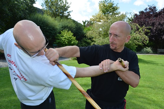Im technischen Bereich lehrt man anfangs Kampf- und Verteidigungstechniken mit einem oder zwei arm-langen Stöcken und schult dabei auf besondere Weise die Reflexe, Schnelligkeit, Präzision und Koordination.
